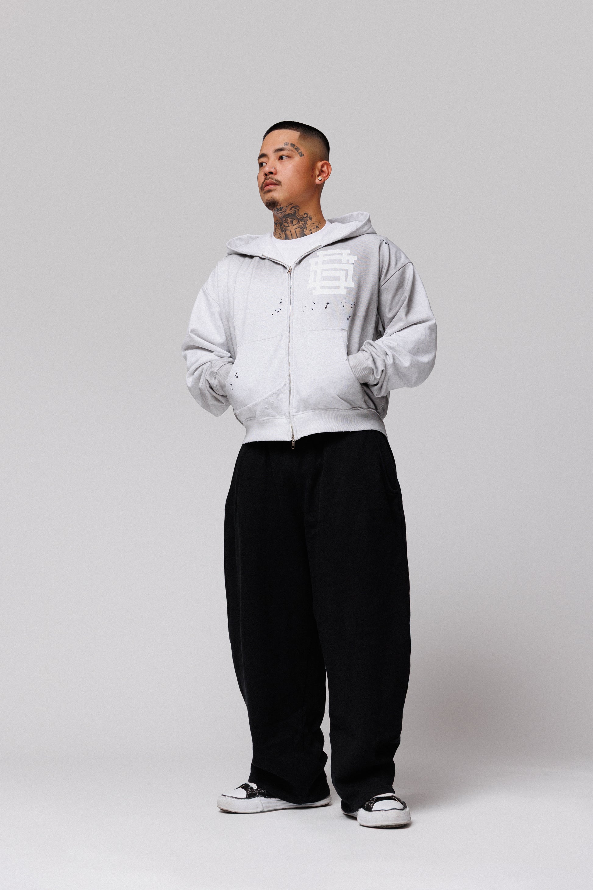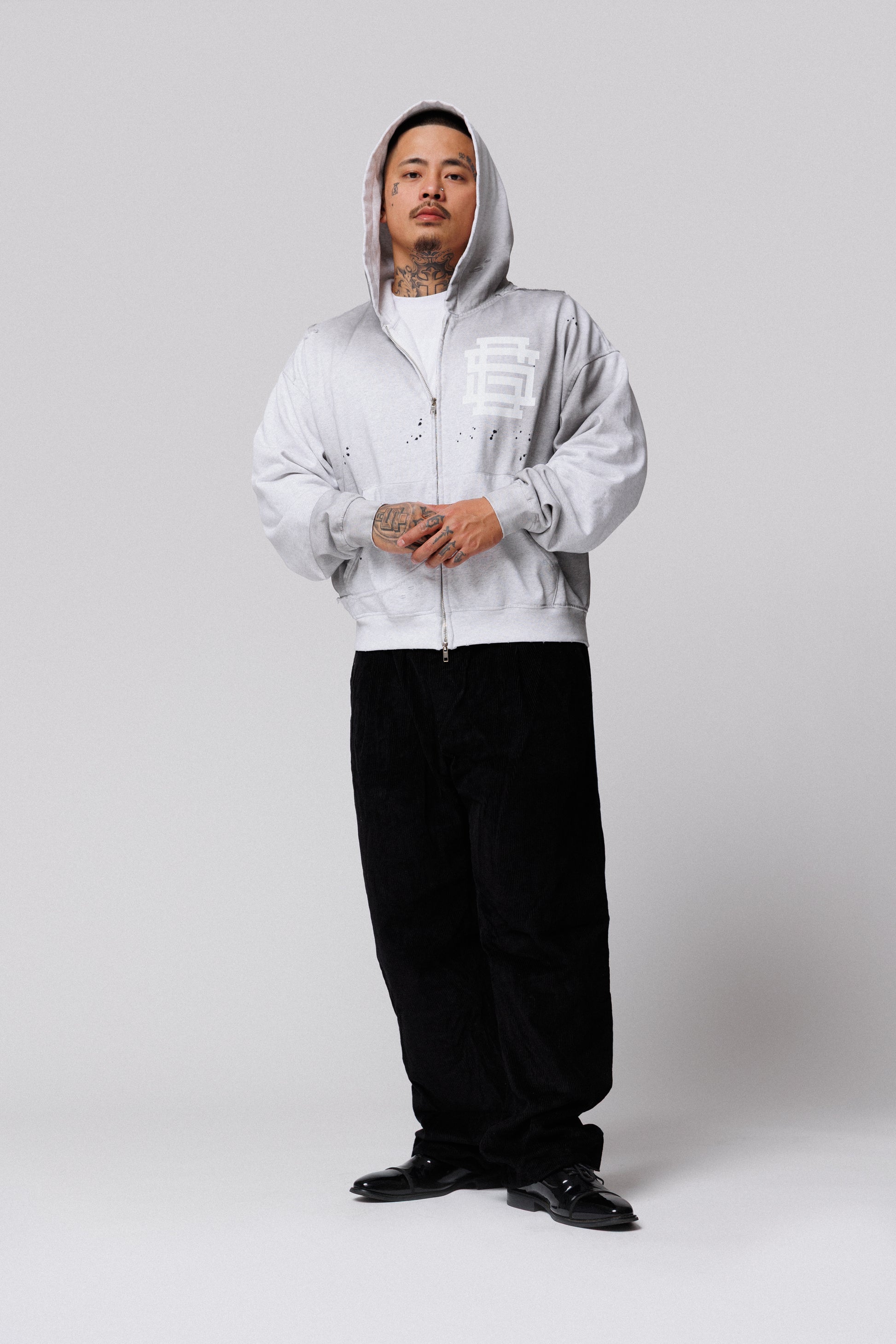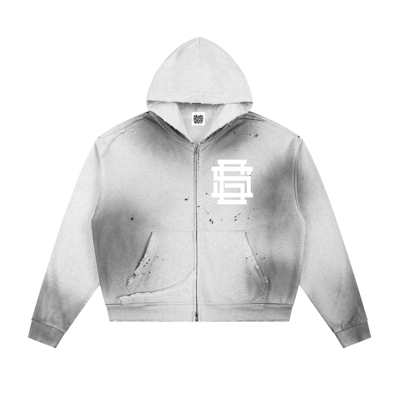DISTRESSED SGS CROPPED BOXY HOODIE. SIZE UP FOR A MORE LOOSE FIT. MODEL IS 5'8 WEARING A SIZE LARGE. PLEASE ALLOW 1-2 WEEKS FOR SHIPPING